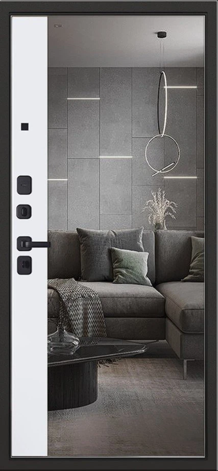 Надежная входная Дверь Scandi с зеркалом премиум класса по цене 45 143 руб. Большая толщина стали защитит от проникновения в ваш дом, квартиру или коттедж. Используется очень качественная фурнитура: замки, цилиндры, ручки, защелки. Покрытие и отделка двери изготовлено под внимательным контролем производителя. Дверь имеет долгий срок службы и гарантию.