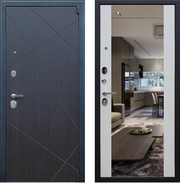 Надежная входная Дверь Вектор с зеркалом премиум класса по цене 48 993 руб. Большая толщина стали защитит от проникновения в ваш дом, квартиру или коттедж. Используется очень качественная фурнитура: замки, цилиндры, ручки, защелки. Покрытие и отделка двери изготовлено под внимательным контролем производителя. Дверь имеет долгий срок службы и гарантию.